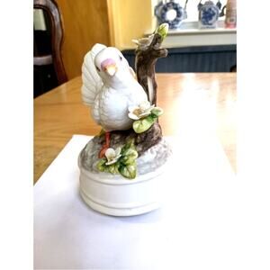 VTG ROYAL CROWN PORCELAIN WHITE DOVE BIRD SITS ON BRANCH MUSICAL 6”