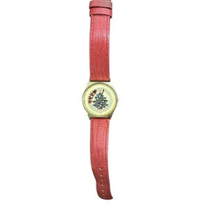 VTG R&R Christmas Watch Women’s Leather Red Band Bear Train Holiday