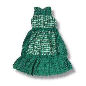 VTG RYAN MICHELLE DRESS, CROCHET GREEN, Size PL
