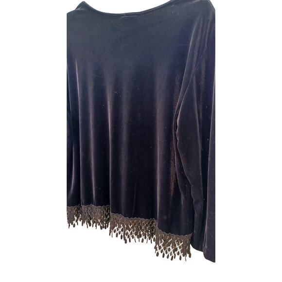 Vintage Rabbit Rabbit Rabbit Designs Black Plush Velvet Top with Lace Trim Women's XL, Stretch Velvet