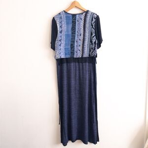 VTG Rabbit Rabbit Rabbit Design Boho Artist Blue Layered Maxi Dress Size 12M