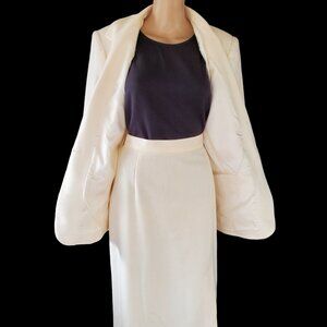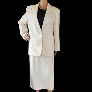 VTG Radcliffe Sag Harbor Wool Suit Set Women's 12/16 Blazer Pencil Skirt White