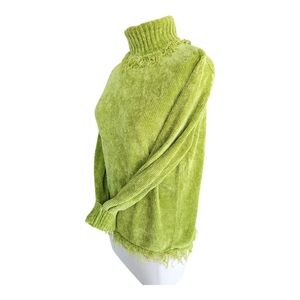 VTG Rafaella Green Chenille Fringe Turtleneck Sweater M Hong Kong Y2K Cozy