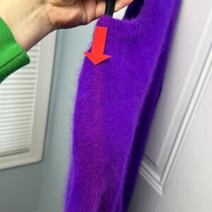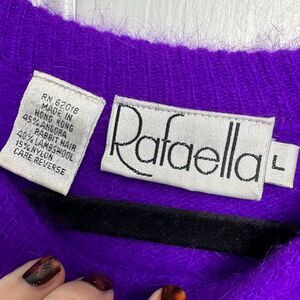 VTG Rafaella Sweater Womens Large Purple Angora Knit Shoulder Pads *Fading