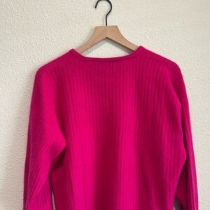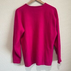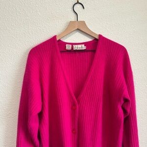 VTG Rafella Womens Medium Fushia Pink Rabit Hair Ribbed Cardigan Bright Cozy Preppy Academia