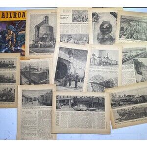 "Railroad Magazine" pages and pictures cut from the magazines. They come from May and July 1954 issues. Photos demonstrate what you will receive. 5.2 oz in weight. Full Pages are 9x6". Great for any Train enthusiast. Great for crafting. Some pictures suitable for framing. Carefully shipped.