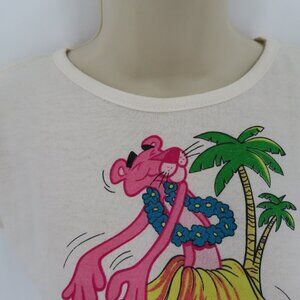 VTG Rainbow Allie Womens 8 Pink Panther Hula 1985 Cropped Tee T Shirt Retro 80s