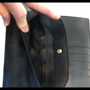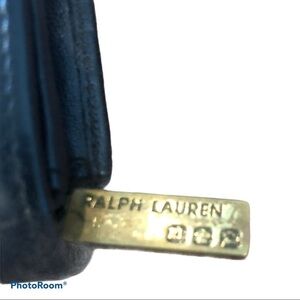 Gorgeous VTG RL Black Leather Wallet/Checkbook With Brass Hardware. Snap close with CC Slots/Zip Coin Purse. Several pockets. Minor wear. Some surface scratches.