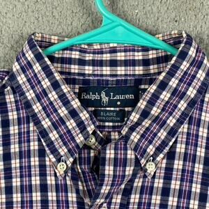 VTG Ralph Lauren Blaire Button Down Shirt Men's L Blue Red Plaid Causal Preppy
