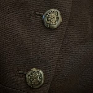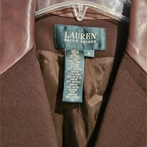 VTG Ralph Lauren Blazer equestrian horse buttons Leather Trimmed Collar Brown 16
