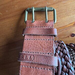VTG Ralph Lauren Brown Leather Wide Braided Belt with Two Prong Buckle - Large