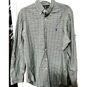 VTG Ralph Lauren Button Up Men's Shirt Plaid Green Purple Classic Fit 15.5/M