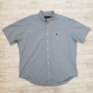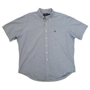 Description: VTG Ralph Lauren Classic Fit Short Sleeve Shirt Logo Down Blue Plaid Hong Kong Men XXL 2XL