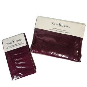 VTG Ralph Lauren Classic Maroon One Twin Flat Sheet Two Standard Pillowcases Set