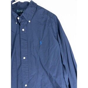 VTG Ralph Lauren Custom Fit Shirt Mens XL Blue Solid Classic Pony Button Down