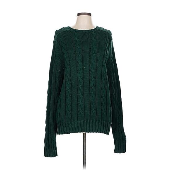 VTG Ralph Lauren Green Cableknit Cotton Chunky Sweater L