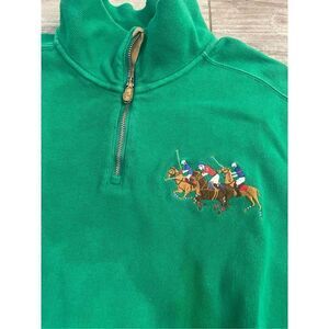 VTG Ralph Lauren Long Sleeve 1/4 Zip Pullover Sweater Green Embroider Men XXL