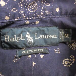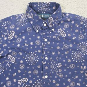 VTG Ralph Lauren Mens Paisley Print Shirt size M Indigo Blue Bandana Button Down