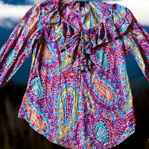 VTG Ralph Lauren Peasant Blouse ruffle collar Womens S paisley Boho y2k 90s