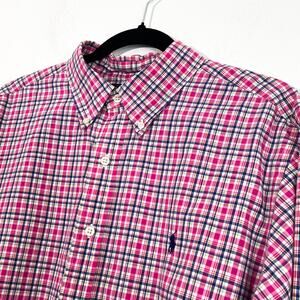 Vintage Ralph Lauren Plaid Button Down Shirt Mens XL Pink Gingham Cotton Preppy 90s Old Money Casual