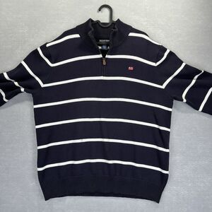 VTG Ralph Lauren Polo Jeans Co Striped 1/4 Zip Pullover Sweater RL Flag Size XL
