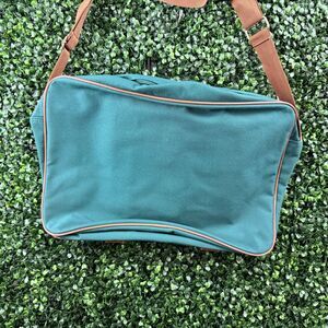 VTG Ralph Lauren Polo Messenger Bag Green Canvas Brown Leather Shoulder Strap. Shipped with USPS Ground Advantage.