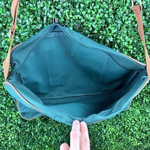 VTG Ralph Lauren Polo Messenger Bag Green Canvas Brown Leather Shoulder Strap
