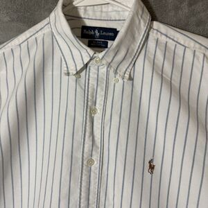 VTG Ralph Lauren Shirt L Blue White Striped Blake Pony Logo Button 90s Y2K READ