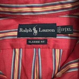 VTG Ralph Lauren Shirt Mens XL 17 Classic Fit Button Down Dark Pink & Stripes