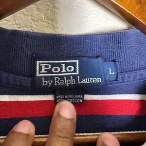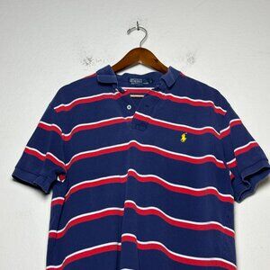 VTG Ralph Lauren Striped Yellow Pony Striped Red Polo Shirt Short Sleeve Men L