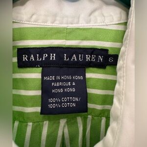 VTG Ralph Lauren Women’s Button Down Lime Green White Stripe Size 6 Pink Logo