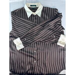 VTG Ralph Lauren Women's sz12 100% Silk Stripped Button Down Oxford Style Top