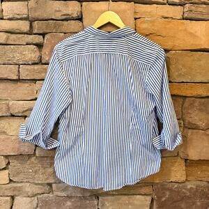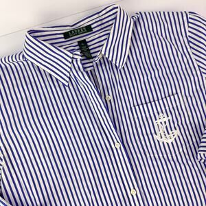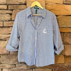 VTG LRL Ralph Lauren Crest Button Up Y2K White and Blue Stripe Femme Cotton Shirt Essentials Oxford Blouse