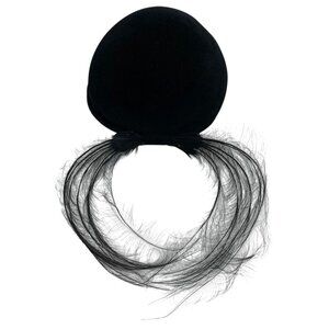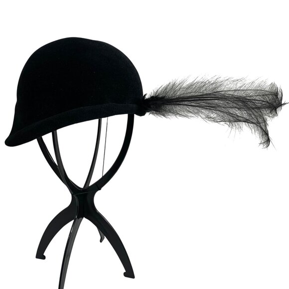 VTG Ranel Black Cloche Glory Imported Velour Hat w/ Feather Accent Chin Strap OS