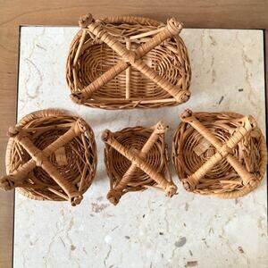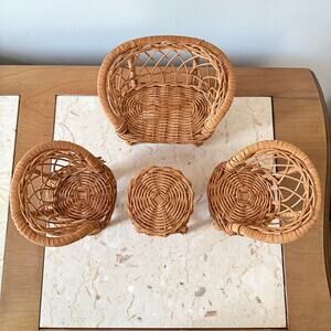 VTG Rattan Wicker Miniature Doll House Furniture Love Seat 2 Chairs Table Boho