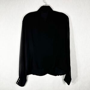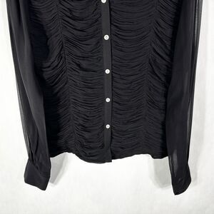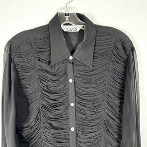 VTG Ravel Large Top Silk Semi Sheer Ruffled Gathered Front Pearl Button Up 364