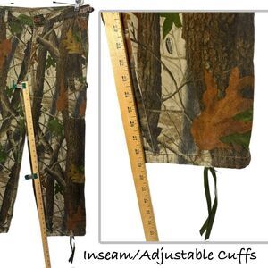 Vintage soft cotton twill baggy cargo pants. Loose fit with adjustable waist straps and cuff drawstrings ACU/BDU-style. Realtree hardwoods camouflage in fall/autumn colors. Perfect for hunting and hiking or grunge skater streetwear. Ranger Outdoor Apparel, Adjustable waist 33-34W x 29L.