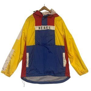Vintage Rebel Minds Mens Pullover Size XL Multicolor Windbreaker Red Blue Yellow. Rebel spell out. 1/4 zip. Hooded. Mesh lining.