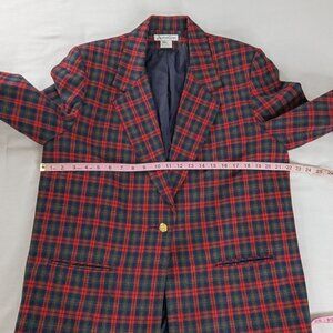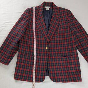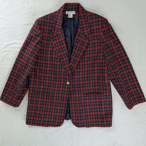 VTG Red Green Blue Plaid Button Front Wool Blazer Academia Revival