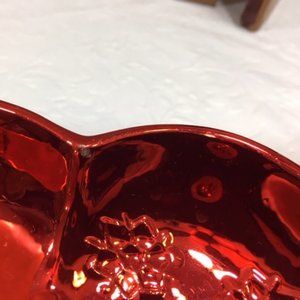 VTG Red & Green Decorative Snowman Holiday Candy Treat Plates Dishes Set of Two