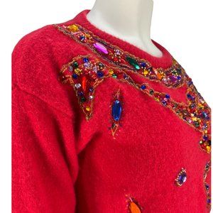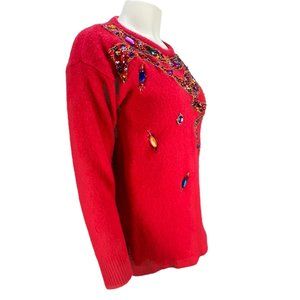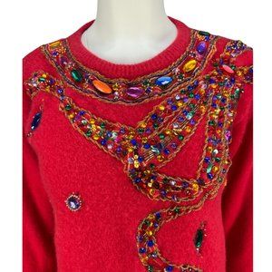 VTG Red KAMIRAN Beaded Lambswool Angora Sweater Sz Medium
