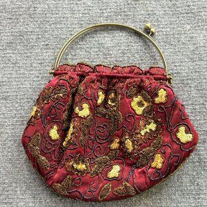 VTG Red Sequin Beaded Purse Metal Handle Kisslock Fairycore Steampunk Artsy boho