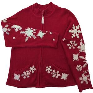 VTG Red & White Embroidered Applique Snowflake Full Zip Sweater Women's Size S