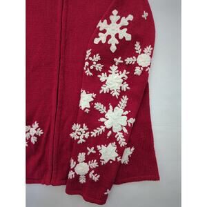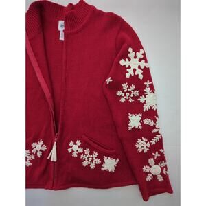 VTG Jason Maxwell Red & White Embroidered Applique Snowflake Full Zip Sweater women's size Small