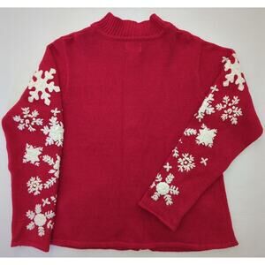 VTG Jason Maxwell Red & White Embroidered Applique Snowflake Full Zip Sweater women's size Small