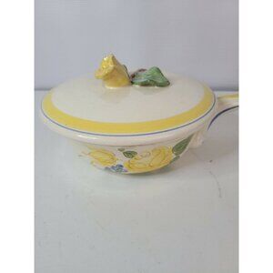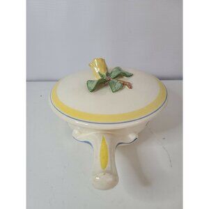 VTG Red Wing Pottery White Yellow Rose Hand Painted Ceramic Soup Tureen Lidded