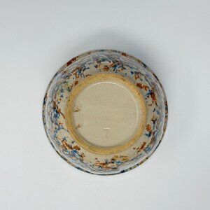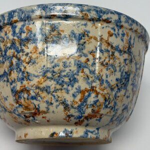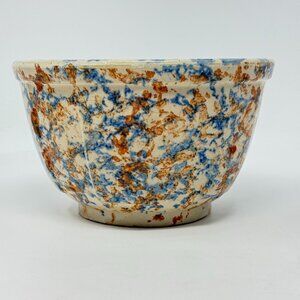 This *RARE* vintage Red Wing Stoneware paneled pottery advertising bowl from Ruehl's Grocery in Beaver Dam, WI is a unique piece of Americana. The round stoneware bowl features a spongeware pattern in a multicolor finish, with a diameter of 7.5 inches and a depth of 4 inches. With a limited edition production style and original earthenware technique, this collectible item reflects the late 20th-century era of American pottery. Made in the United States, this glossy bowl weighs 2 lbs and showcases the theme of advertising in a decorative and functional piece of dinnerware.