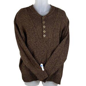 Vintage Redhead Mens Size Large Henley Sweater Chocolate Brown Heavyweight Chunky Long Sleeve Timeless