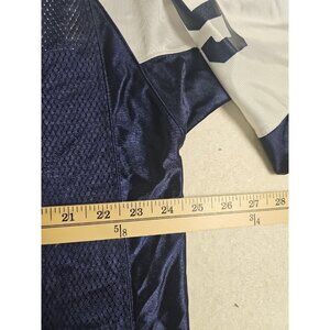 The product is a vintage Reebok Dallas Cowboys Tony Romo NFL stitched authentic jersey in size XL. This officially licensed jersey features the colors of the team, blue, and is designed for male fans of the Dallas Cowboys and football in general. It is a must-have accessory for any fan of the National Football League and Tony Romo, making it a valuable piece of fan apparel and memorabilia.