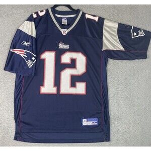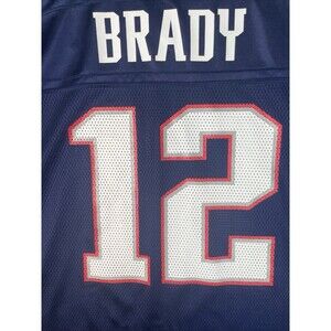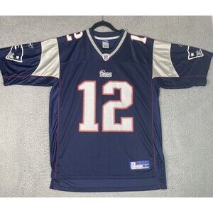 VTG Reebok Jersey Tom Brady #12 New England Patriots Mens Large 48 Blue NFL EUC